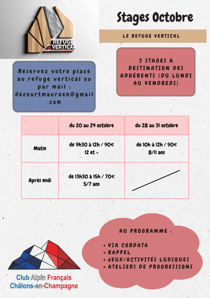 Vous êtes adhérent au CAF Châlons en Champagne et vous voulez vous amuser en faisant de l’escalade pendant vos vacances ? Venez participer à l’un de nos stages au Refuge Vertical.