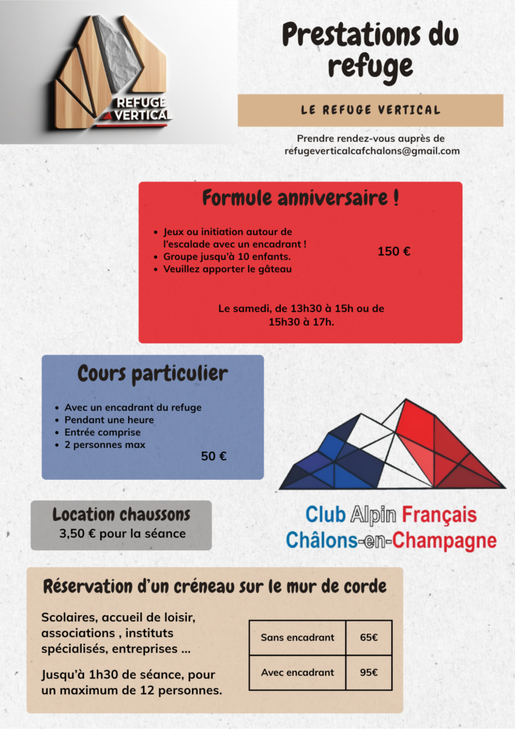 En plus de séance libre, le Refuge Vertical vous propose des prestations clefs en mains.