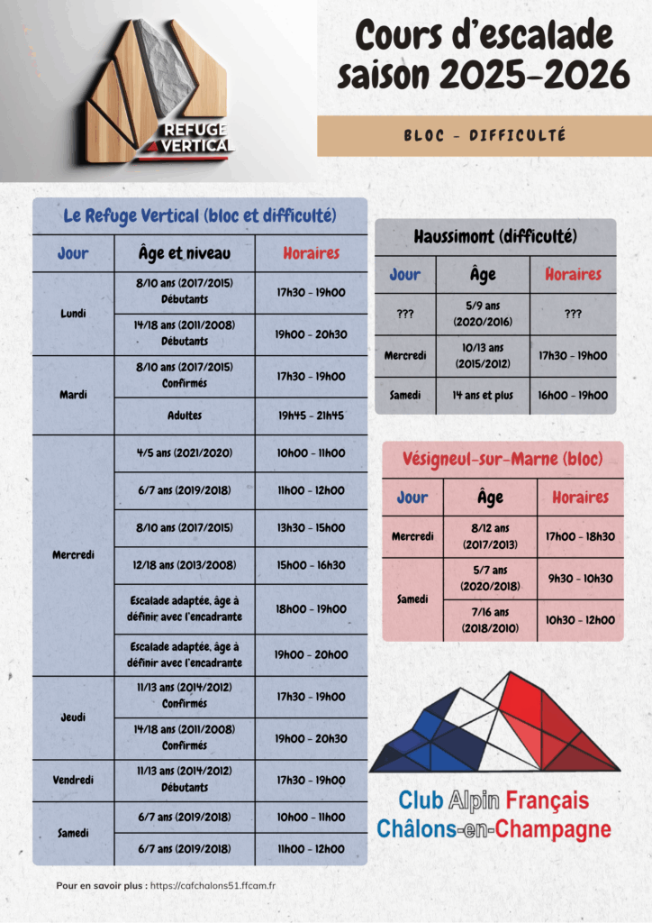 Vous trouverez ci-dessous les différents créneaux de cours proposés.